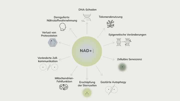 Häufige Anzeichen eines sinkenden NAD⁺-Spiegels sind: