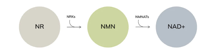 Nach der Aufnahme wird NMN (Nicotinamid-Mononukleotid) schnell in NAD⁺ umgewandelt – ein lebenswichtiger Coenzym, das zentrale zelluläre Prozesse wie Energiestoffwechsel, DNA-Reparatur und gesundes Altern unterstützt.
