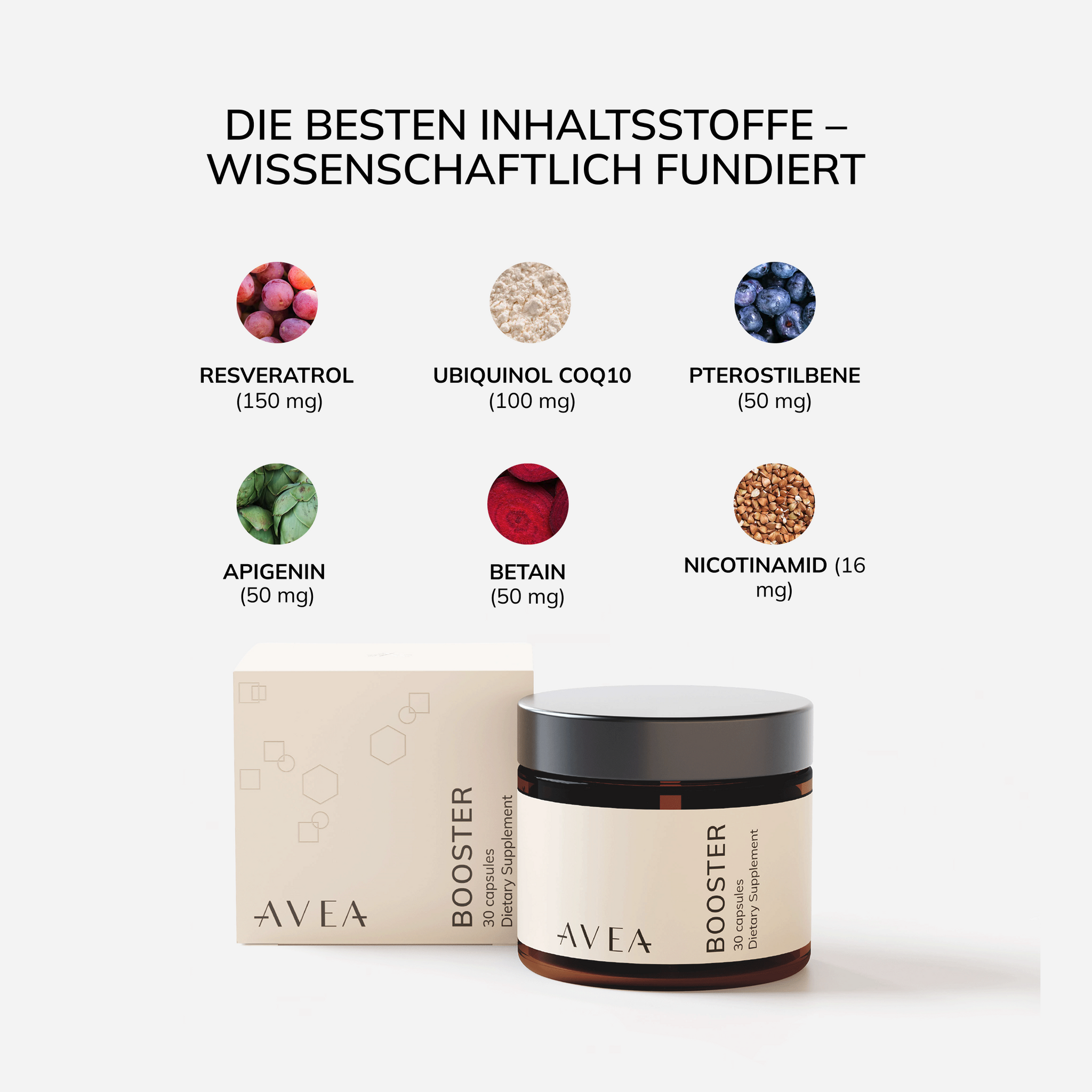 - Der Booster verbessert die Energieproduktion, den NAD+-Stoffwechsel und den antioxidativen Zellschutz