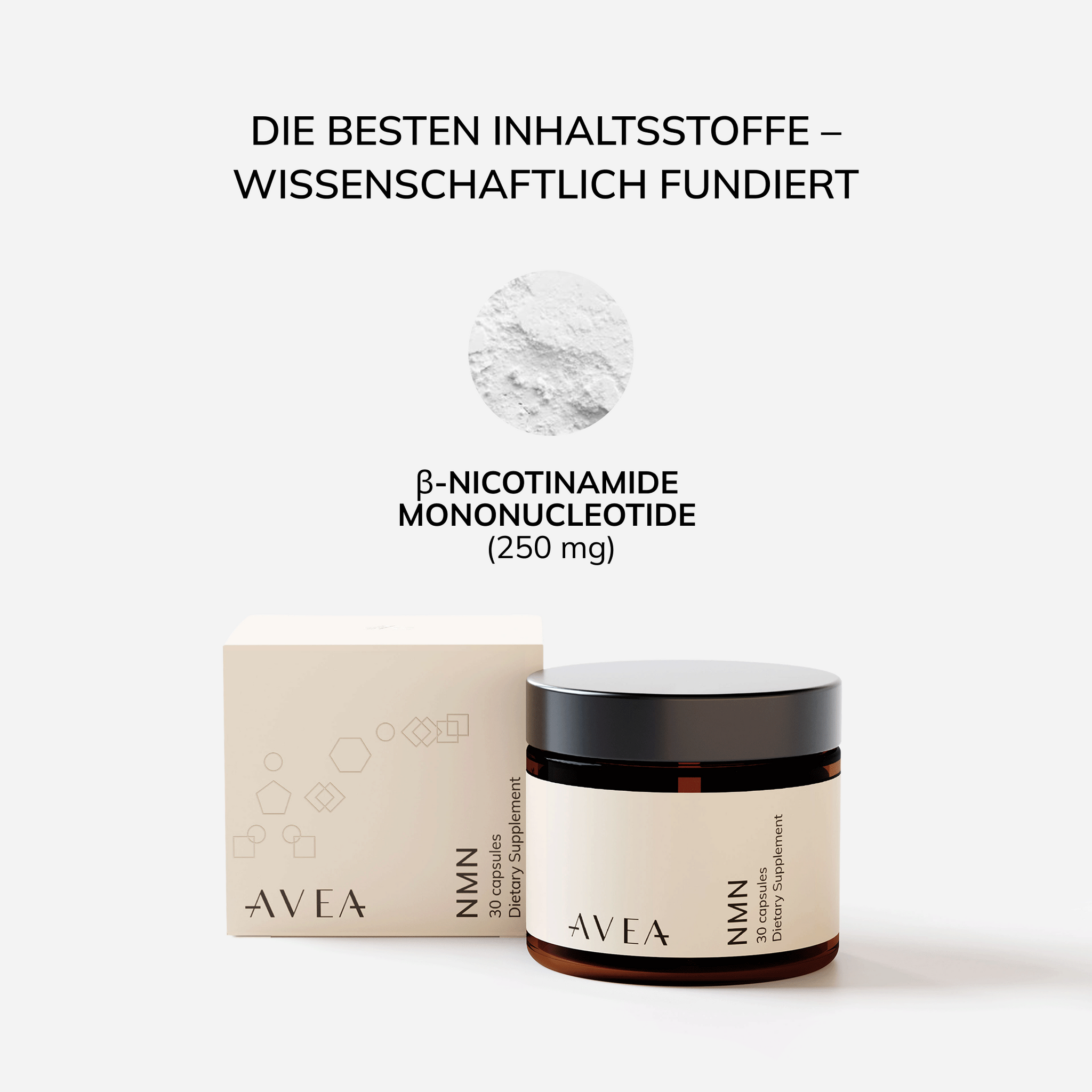 AVEA vereint hochwirksame, reine und bioverfügbare Inhaltsstoffe zu einer synergetischen Lösung für gesundes Altern. Die zwei Komponenten des Longevity Bundles wirken gemeinsam gegen zwei der zentralen Treiber zellulärer Alterung – aus verschiedenen Blickwinkeln und mit maximaler Wirkung.