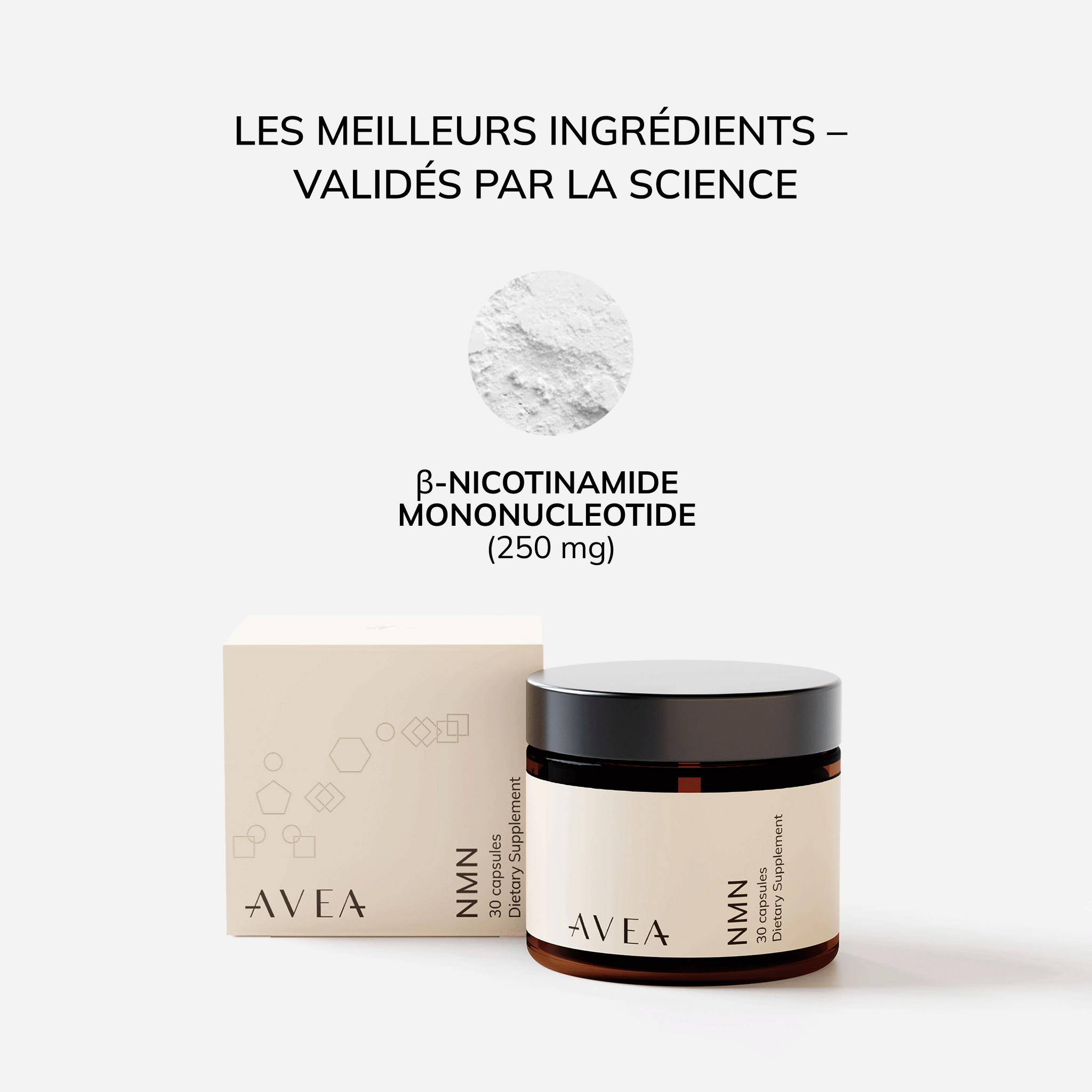 AVEA utilise le NMN Longevir™, produit en Europe et doublement testé de manière indépendante dans un laboratoire suisse, afin de garantir une pureté, une stabilité et une qualité optimales.