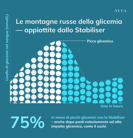 E non si tratta solo di come ti senti: nel lungo periodo, i picchi glicemici frequenti mettono a dura prova il metabolismo. Uno studio ha dimostrato che i picchi glicemici acuti possono scatenare stress ossidativo e risposte infiammatorie, anche in individui apparentemente sani.* Altri studi hanno evidenziato come un andamento glicemico irregolare sia associato a un calo delle funzioni cognitive, con un impatto che tende a intensificarsi con l’età.**