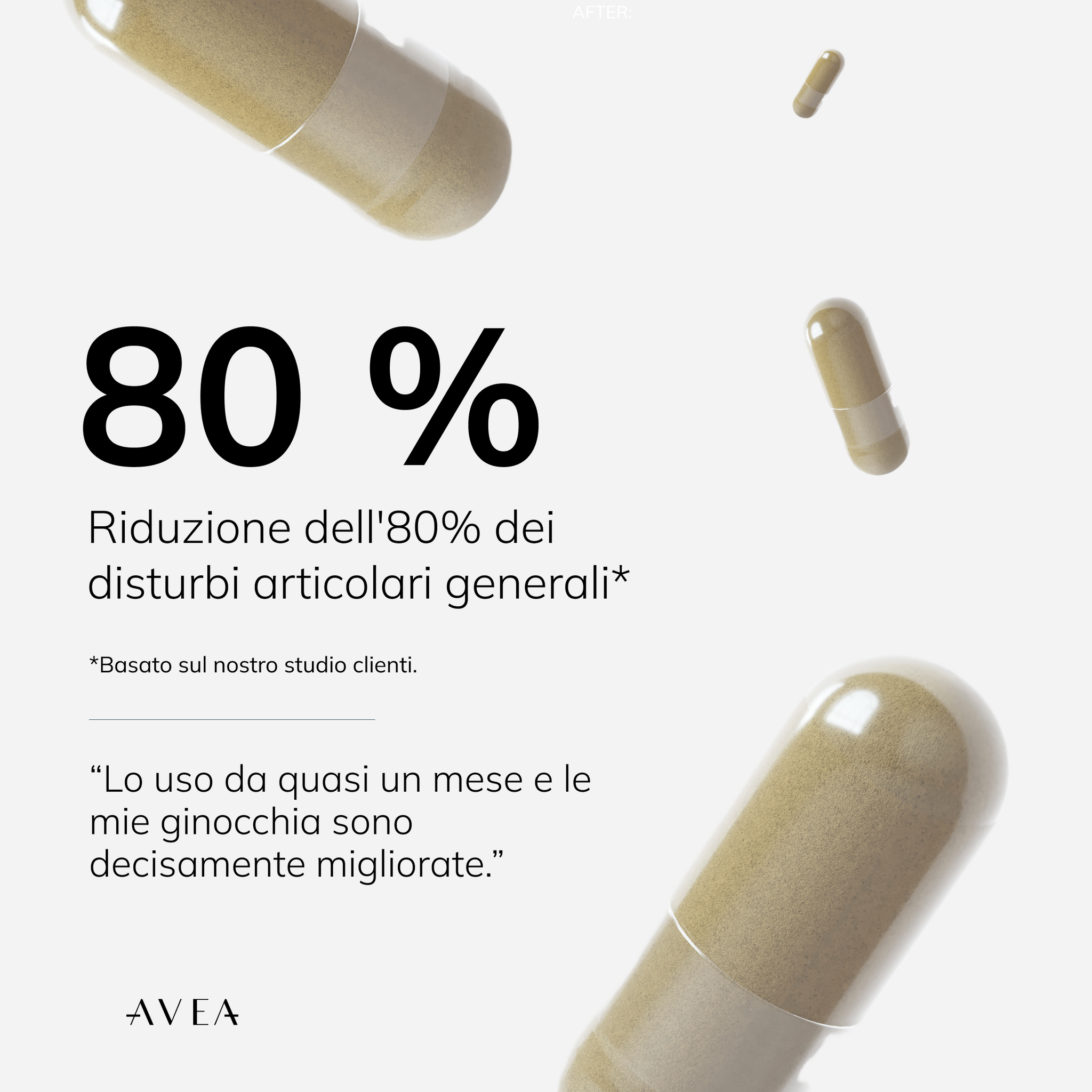 Con il tempo, la cartilagine si deteriora, l’infiammazione si accumula e l’attività quotidiana o l’esercizio fisico possono causare rigidità e disagio. Senza un supporto mirato, questa usura continua può compromettere la mobilità e la salute articolare nel lungo termine. Mobiliser di AVEA sostiene le articolazioni dall’interno, aiutandoti a muoverti con libertà, recuperare più rapidamente e restare attivo più a lungo.