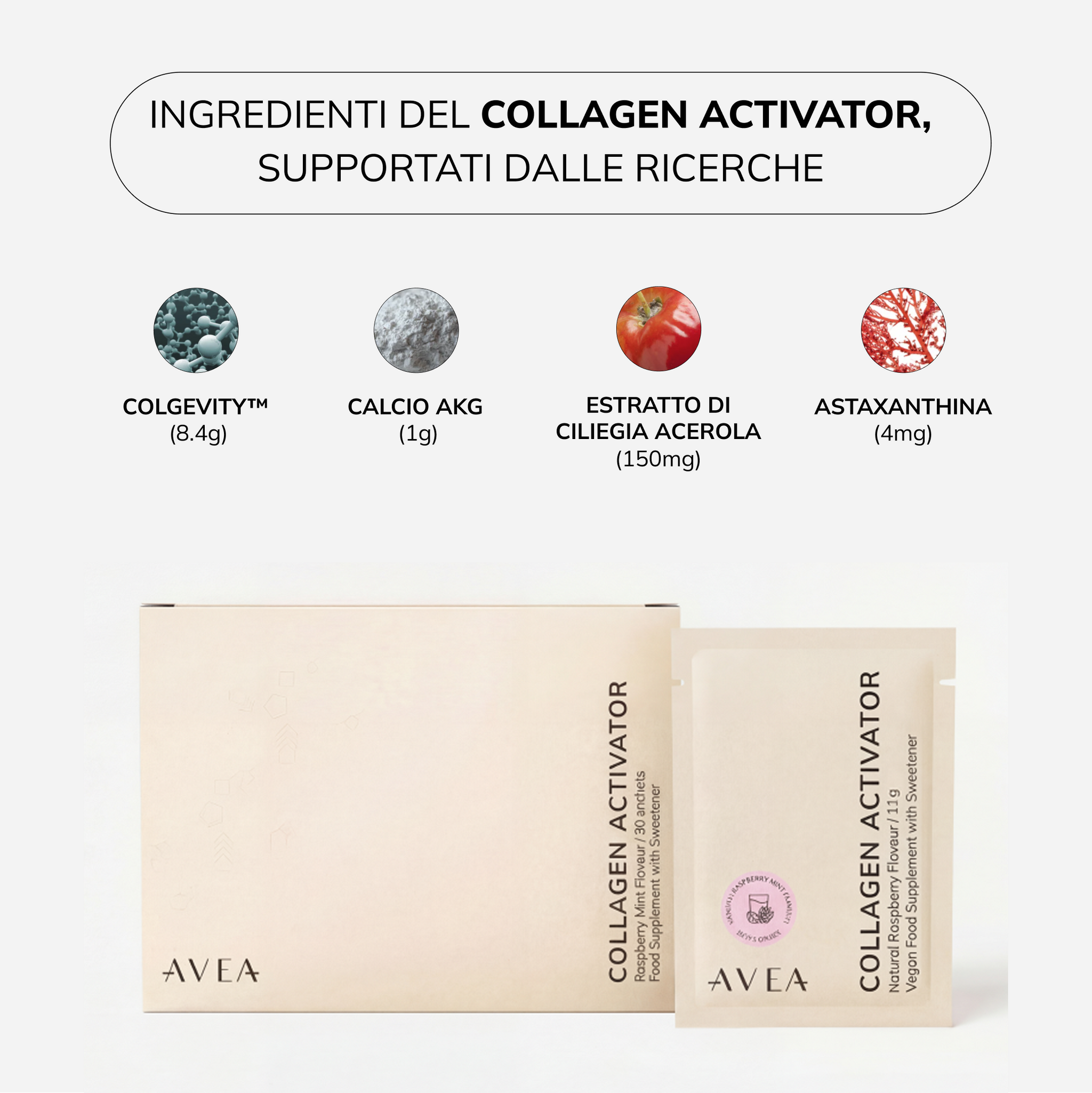 - Collagen Activator (30 bustine per confezione): 4x più potente del collagene: ne stimola la produzione