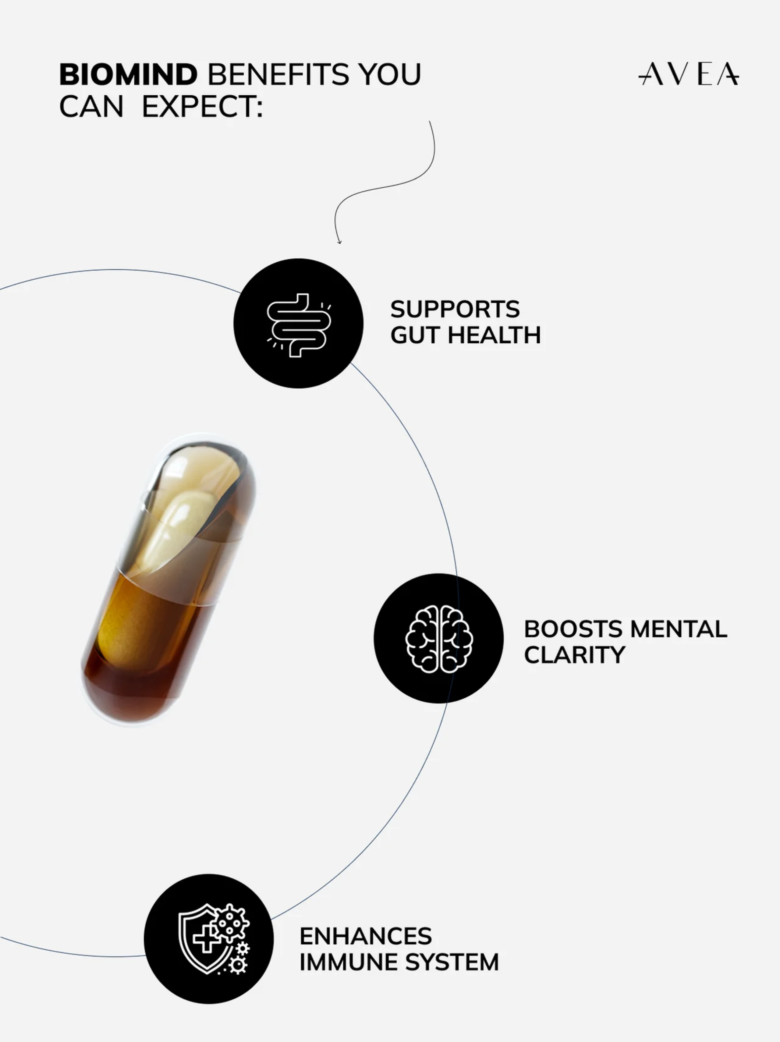 The 10 probiotic strains (30Bn CFUs), including our proprietary strains Bifidobacterium Breve AVEALIFE 101 and Lactobacillus Casei AVEALIFE 201, work together to help maintain gut barrier integrity, aid digestion, and balance gut flora.
