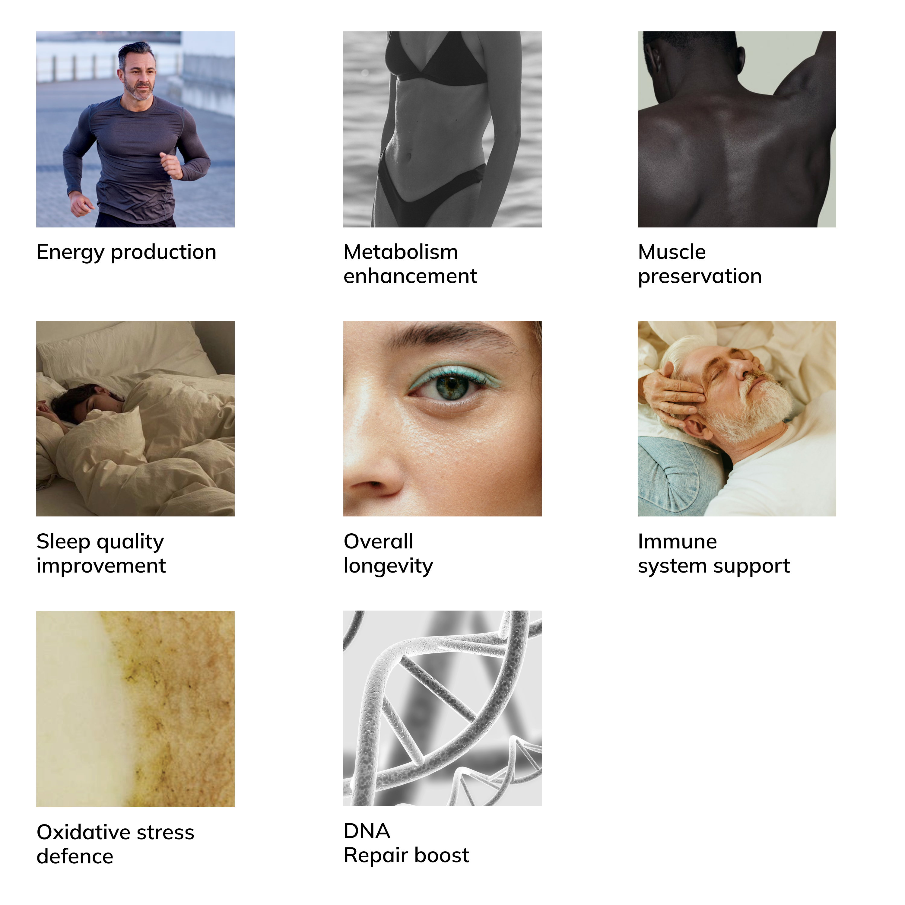 NMN, a vitamin B3 derivative, serves as a precursor, offering a promising approach to optimise NAD+ levels in your body. Avea's NMN supplement, featuring advanced Longevir™ NMN, targets cellular ageing by boosting NAD+ levels, proven effective in clinical trials, with 99% purity.