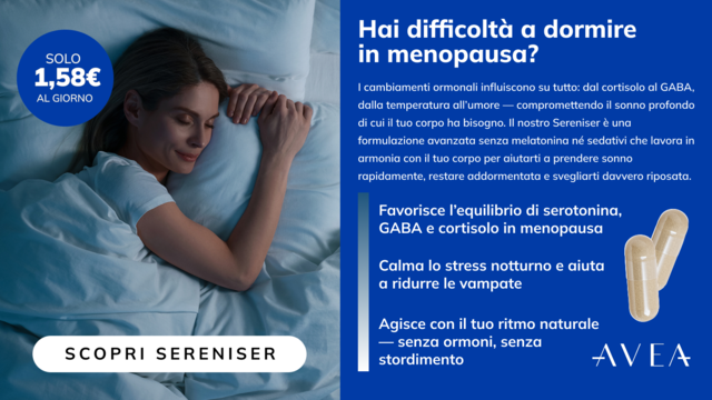 Tutto questo senza sedazione, senza dipendenza e senza alterare l’architettura naturale del tuo sonno. Perché ritrovare il sonno in menopausa non significa solo superare la notte. Significa dare al tuo corpo la possibilità di rigenerarsi. Per sentirti di nuovo te stessa: lucida, calma, capace.