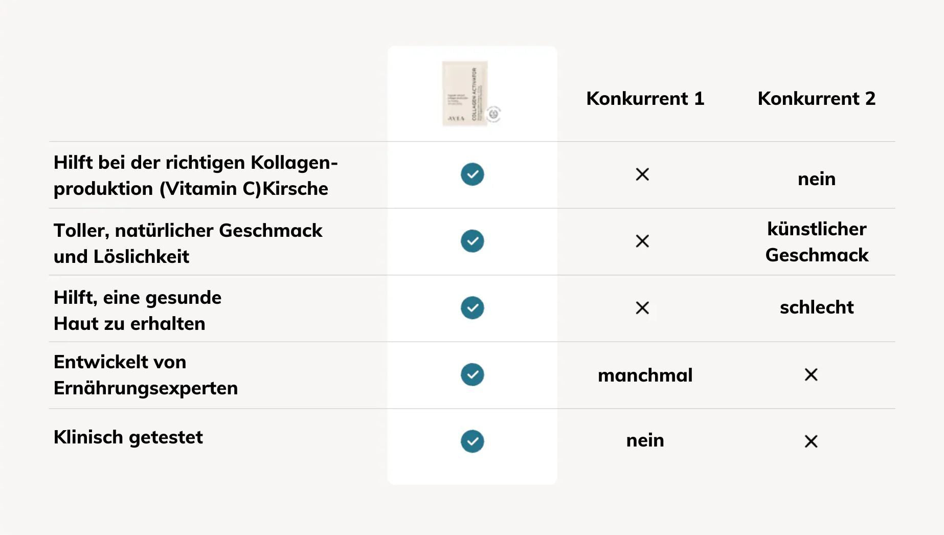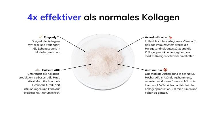 Kollagen verleiht deiner Haut, deinen Knochen, Muskeln und deinem Bindegewebe strukturelle Integrität und fungiert sozusagen als Klebstoff, der deinen Körper zusammenhält. Eine starke Kollagenstruktur hilft deiner Haut, Feuchtigkeit zu speichern und elastisch zu bleiben – das sorgt für ein jugendliches und strahlendes Aussehen.