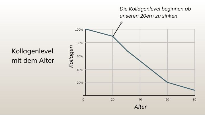 Kollagen ist ein Protein, das aus 19 verschiedenen Bausteinen besteht, den Aminosäuren. Die wichtigsten darunter sind Prolin, Glycin und Hydroxyprolin. Gemeinsam mit Nährstoffen wie Vitamin C, Zink, Kupfer und Mangan bilden diese Aminosäuren starke, seilartige Strukturen.