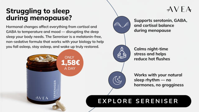 While melatonin supplements mimic the body’s natural “time to sleep” signal, they do little to address why sleep is disrupted in the first place. They can’t rebalance neurotransmitters like GABA, soothe elevated cortisol, or cool a racing mind during a hot flush at 3 a.m. With a short half-life of just 1–2 hours, melatonin often wears off too early—leaving you wide awake in the middle of the night, wondering what went wrong.