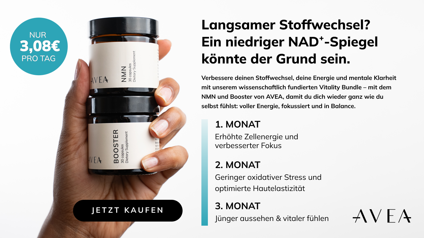 „Wenn es einen zentralen Baustein jeder Longevity-Strategie gibt, dann ist es NAD⁺. Diese Molekül schützt Zellen, treibt Energieprozesse an und aktiviert entscheidende Gene. Die NMN- und Booster-Produkte von Avea bieten eine sichere und wirksame Möglichkeit, den NAD⁺-Spiegel zu erhöhen.“