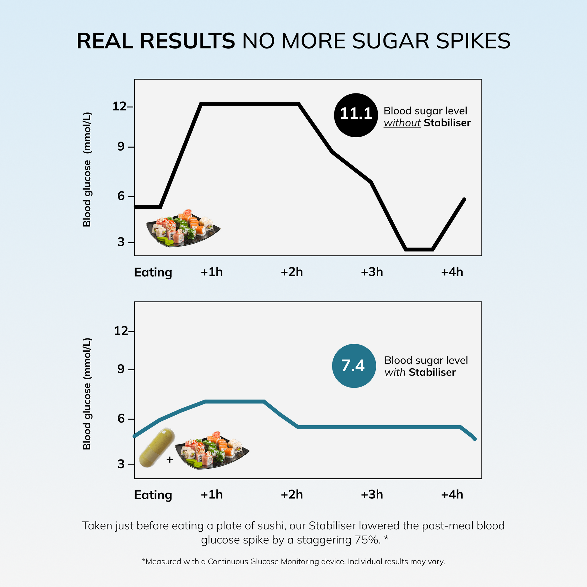 While our Stabiliser can be beneficial for individuals managing their blood glucose levels, it is important to note that it is not a replacement for any prescribed medication. We cannot recommend supplements to individuals with any health condition, including diabetes, without the explicit consent of their doctor.